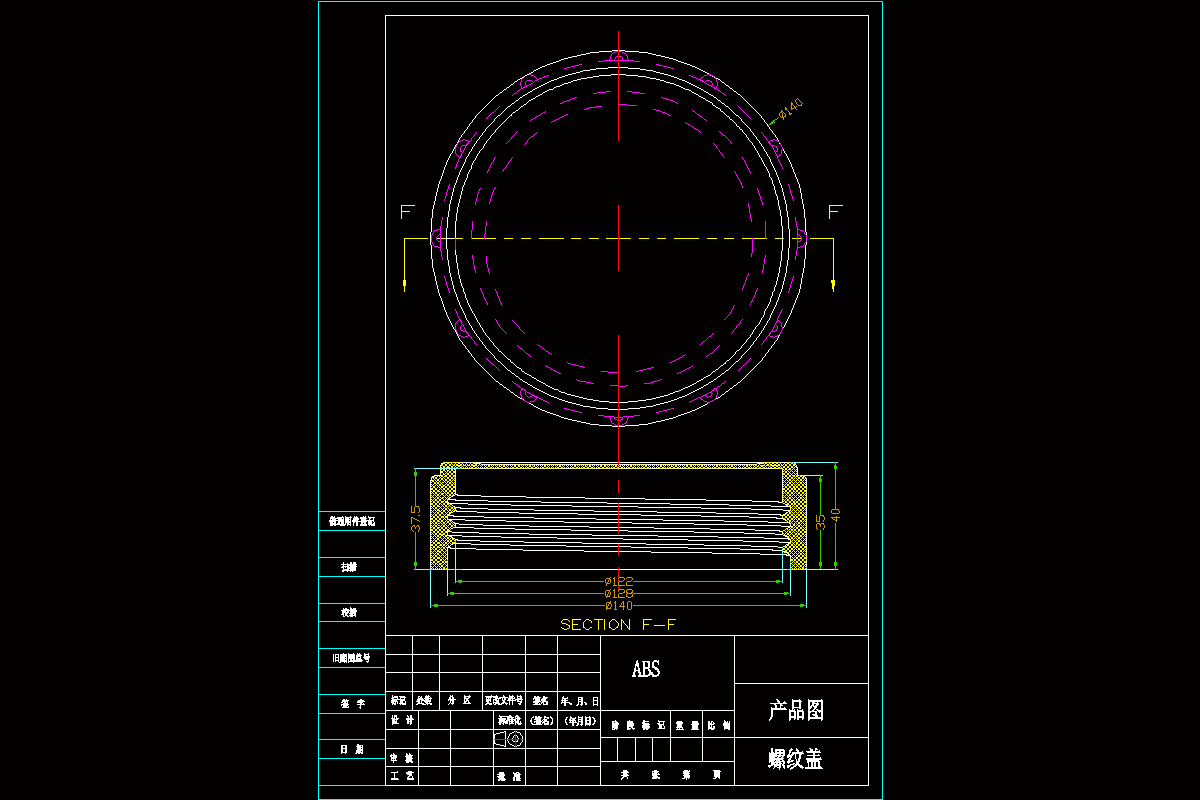本次设计的主要任务是对螺纹盖模具的设计,也就是设计一副注塑模具来生产螺纹盖的塑件产品,以实现自动化提高产量。该课题从产品结构工艺性,具体模具结构出发,对模具的浇注系统、模具成型部分的结构、顶出系统、冷却系统、注塑机的选择及有关参数的校核、都有详细的设计。本次设计的主要难点有:由于塑件为螺纹盖内壁上有螺纹,考虑自动脱螺纹机构,因而模具结构较复杂,为了提高零件的表面质量,采用双分型面点浇口设计。