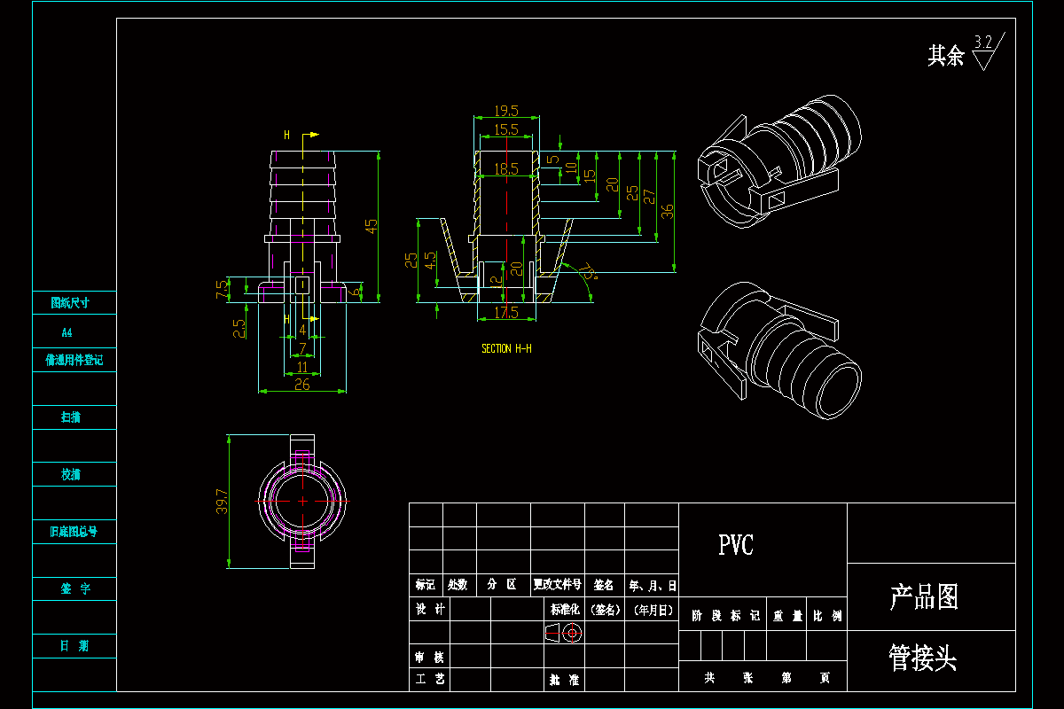 关键词:管接头;一模二腔;侧浇口进料;注射机;冷却系统;注塑模具