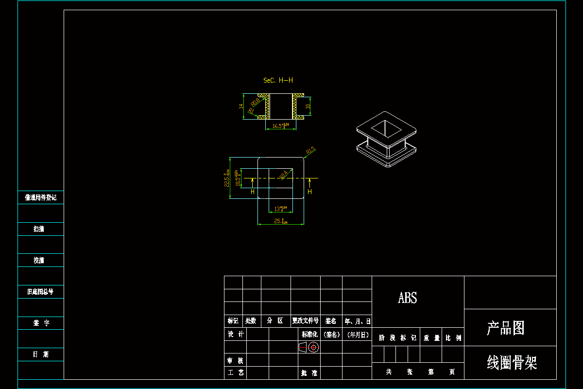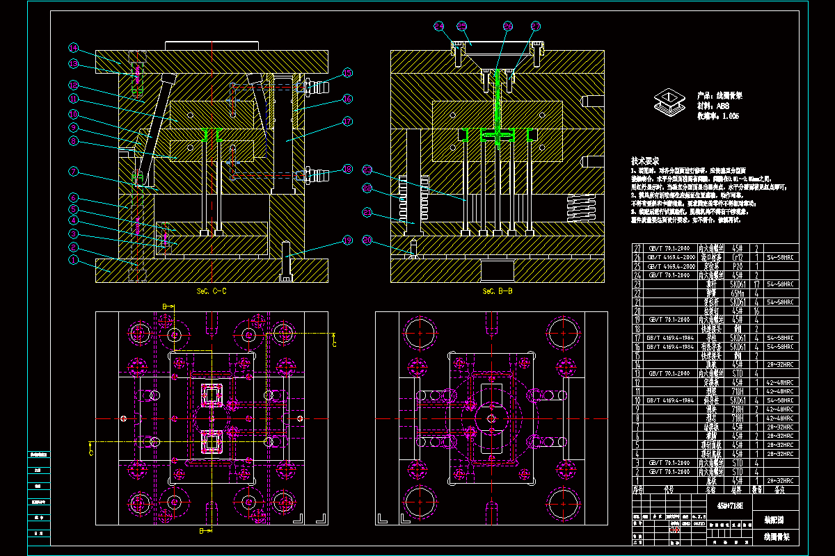 关键词:骨架;一模两腔;侧浇口;注射机;注塑模具