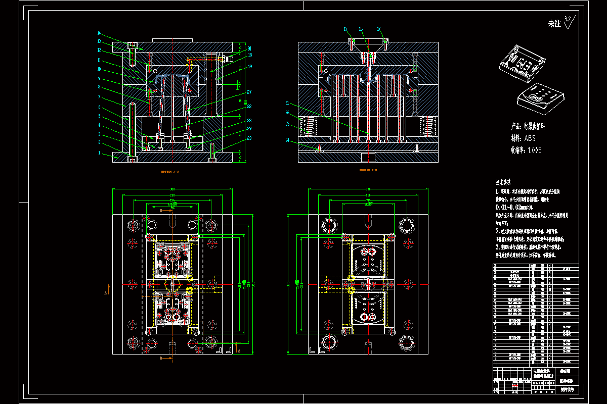 关键词:电器盒;侧浇口;注射机;冷却系统;注塑模具