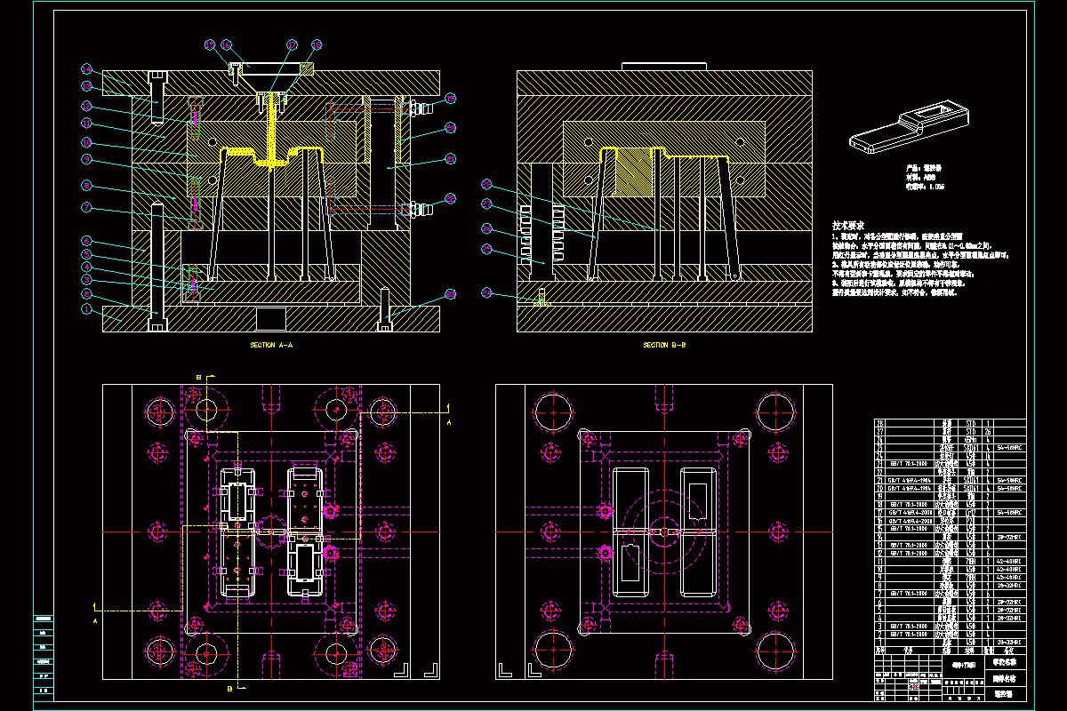 关键词:遥控器后盖;一模两腔;注射机;侧浇口;注射机;冷却系统;注塑模具