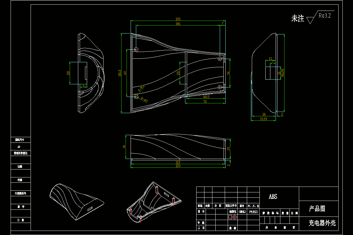本次设计的是手机充电器外壳的注塑模具。所用材料是当前应用较为广泛的材料ABS。在设计中,分析塑件的工艺性。模具结构可采用一模两腔,侧浇口进料,注射机采用HTF 160X2A型号,并对其相关的数据进行校核。首先根据UG软件设计出分型面,进而设计出型腔、型芯及斜顶抽芯机构,通过各种手册选择标准模架的绘制,并且进行浇注系统、脱模机构、冷却系统等模具重要结构的设计。最后对设计过程中的相关零部件进行了计算和校核,在无误的基础上进行了模具总装,并利用AUTOCAD软件绘制出总装及各主要零件的二维工程图,设计出一套塑料注塑模具