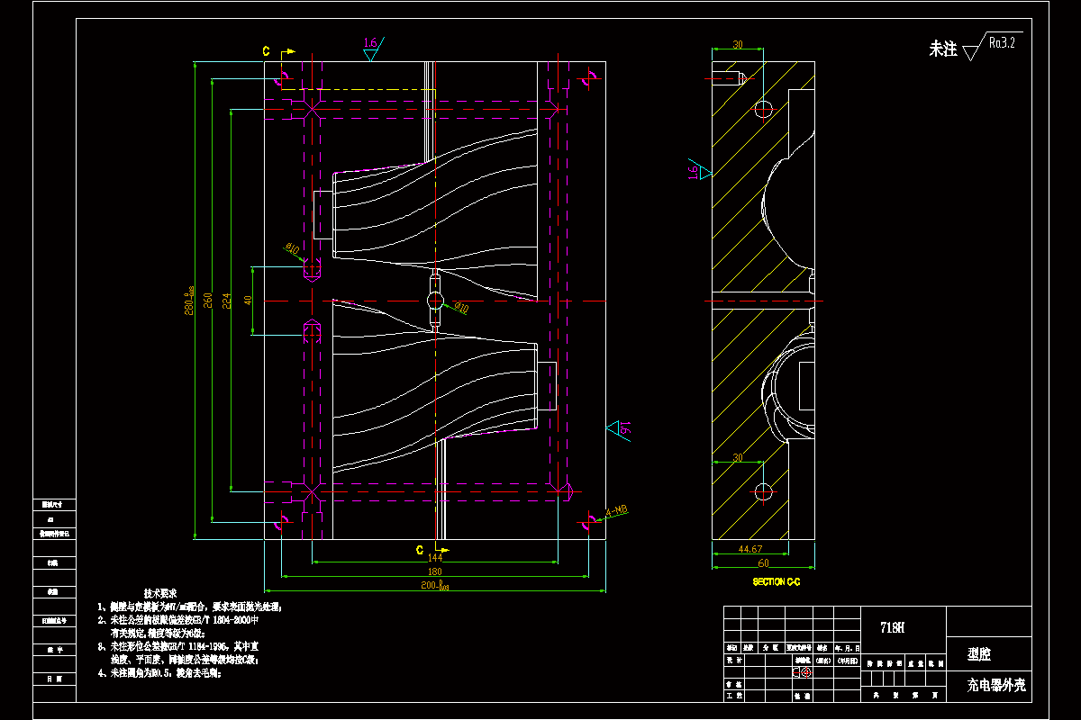 关键词:手机充电器外壳;一模两腔;侧浇口;冷却系统;注塑模具