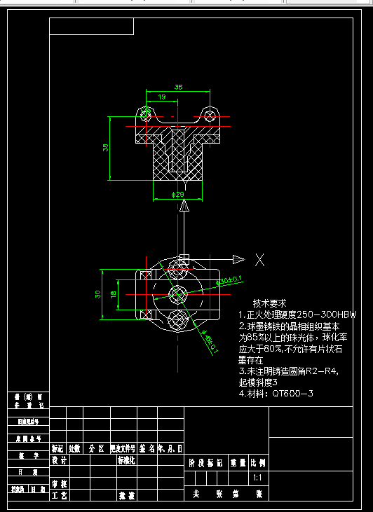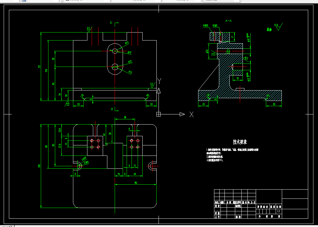 飞锤支架加工工艺规程及钻孔的夹具设计是包括零件加工的工艺设计、工序设计以及专用夹具的设计三部分。在工艺设计中要首先对零件进行分析,了解零件的工艺再设计出毛坯的结构,并选择好零件的加工基准,设计出零件的工艺路线;接着对零件各个工步的工序进行尺寸计算,关键是决定出各个工序的工艺装备及切削用量;然后进行专用夹具的设计,选择设计出夹具的各个组成部件,如定位元件、夹紧元件、引导元件、夹具体与机床的连接部件以及其它部件;计算出夹具定位时产生的定位误差,分析夹具结构的合理性与不足之处,并在以后设计中注意改进。