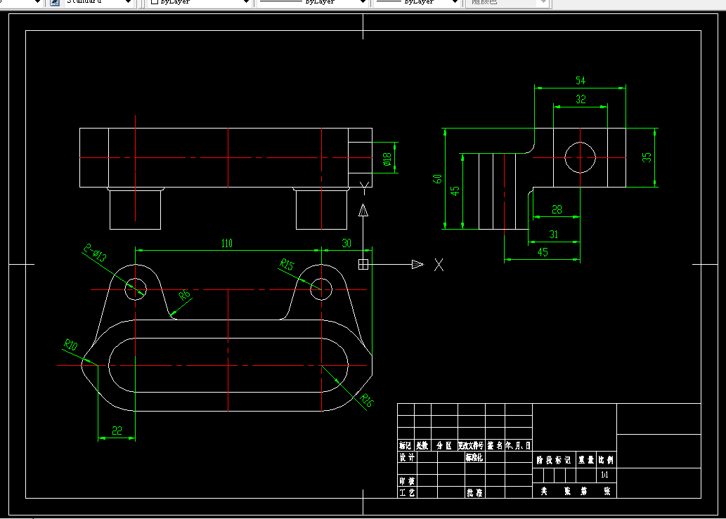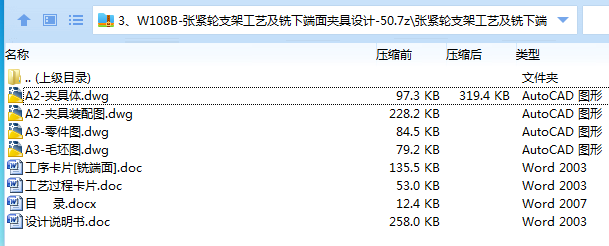 张紧轮支架加工工艺规程及夹具设计是包括零件加工的工艺设计、工序设计以及专用夹具的设计三部分。在工艺设计中要首先对零件进行分析,了解零件的工艺再设计出毛坯的结构,并选择好零件的加工基准,设计出零件的工艺路线;接着对零件各个工步的工序进行尺寸计算,关键是决定出各个工序的工艺装备及切削用量;然后进行专用夹具的设计,选择设计出夹具的各个组成部件,如定位元件、夹紧元件、引导元件、夹具体与机床的连接部件以及其它部件;计算出夹具定位时产生的定位误差,分析夹具结构的合理性与不足之处,并在以后设计中注意改进。