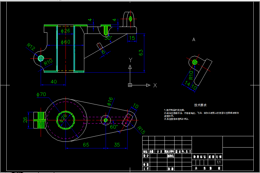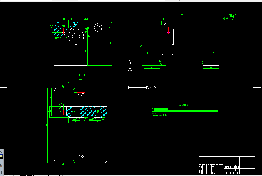 支架的工艺规及其钻、攻丝M10的夹具设计是包括零件加工的工艺设计、工序设计以及专用夹具的设计三部分。在工艺设计中要首先对零件进行分析,了解零件的工艺再设计出毛坯的结构,并选择好零件的加工基准,设计出零件的工艺路线;接着对零件各个工步的工序进行尺寸计算,关键是决定出各个工序的工艺装备及切削用量;然后进行专用夹具的设计,选择设计出夹具的各个组成部件,如定位元件、夹紧元件、引导元件、夹具体与机床的连接部件以及其它部件;计算出夹具定位时产生的定位误差,分析夹具结构的合理性与不足之处,并在以后设计中注意改进。