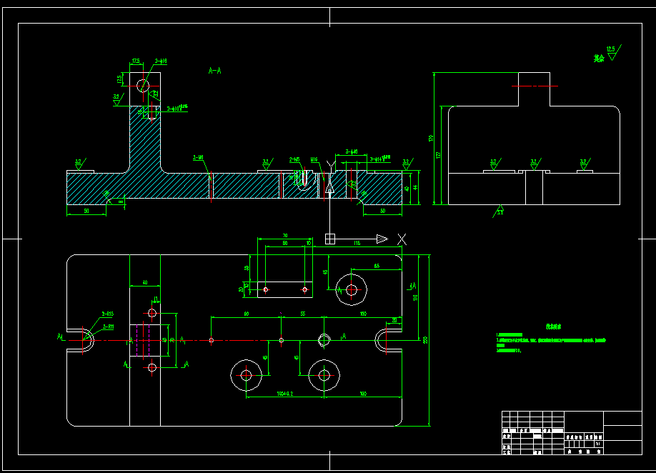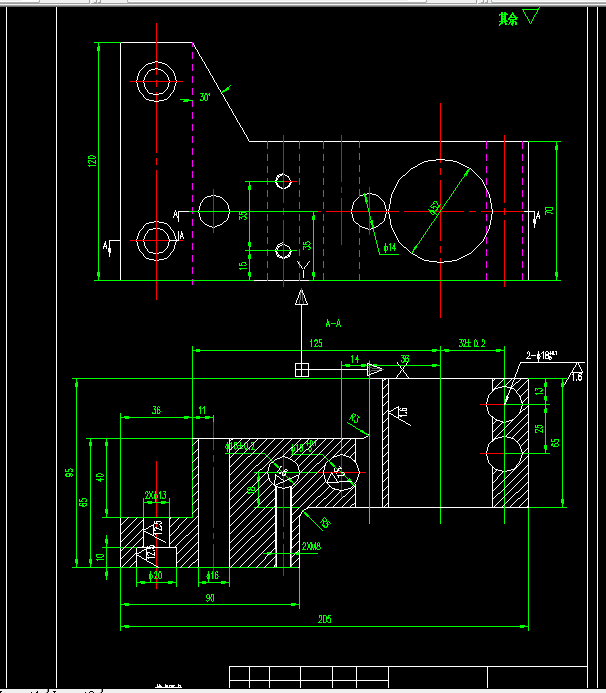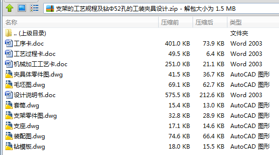 支架零件的工艺规程及钻Φ52孔的工装夹具设计是包括零件加工的工艺设计、工序设计以及专用夹具的设计三部分。在工艺设计中要首先对零件进行分析,了解零件的工艺再设计出毛坯的结构,并选择好零件的加工基准,设计出零件的工艺路线;接着对零件各个工步的工序进行尺寸计算,关键是决定出各个工序的工艺装备及切削用量;然后进行专用夹具的设计,选择设计出夹具的各个组成部件,如定位元件、夹紧元件、引导元件、夹具体与机床的连接部件以及其它部件;计算出夹具定位时产生的定位误差,分析夹具结构的合理性与不足之处,并在以后设计中注意改进。