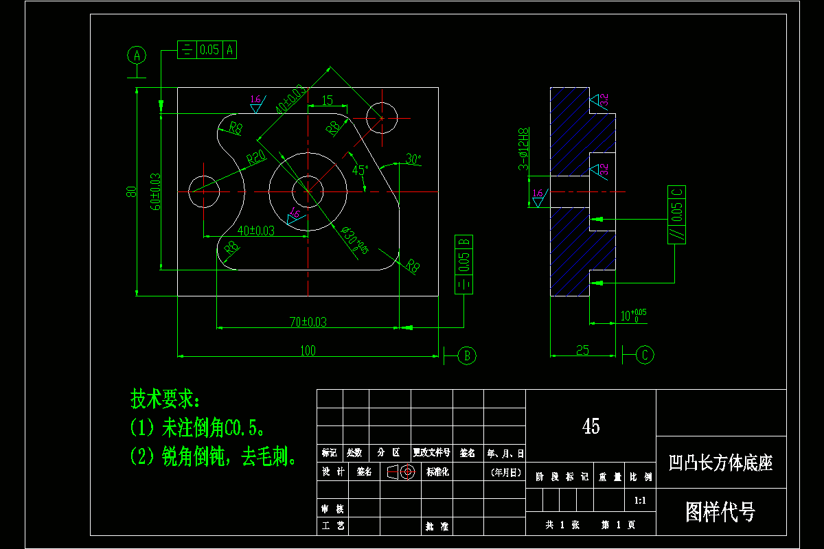 随着科学技术飞速发展和经济竞争的日趋激烈,机械产品的更新速度越来越快,数控加工技术作为先进生产力的代表,在机械及相关行业领域发挥着重要的作用,机械制造的竞争,其实只是数控技术的竞争。本次课题设计通过对凹凸长方体底座零件进行结构分析,合适的工艺规程可以加工出符合精度要求的合格零件。从结构上分析零件,制定加工所需的工艺规程,从毛坯的确定到设计工艺路线,根据所需选择适当的机床、刀具、切削要要素、相应的夹具、零件的三维造型、加工程序的编制和零件的检仿真加工。