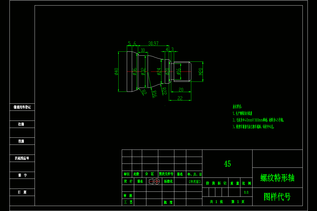 随着科技的不断发展,数控技术在企业中发挥越来越重要的作用。本设计通过对数控加工的工艺特点、加工零件工艺性等进行分析,选择正确的加工方法,设计合理的加工工艺过程,充分发挥数控加工的优质、高效、低成本的特点。设计说明书以数控车床车削轴零件为例,根据被加工工件的材料、轮廓形状、加工精度等选用合适的机床,制定加工方案,确定零件的加工顺序,各工序所用刀具,夹具和切削用量等,编写加工零件的程序。按照说明书要求将加工出零件。
