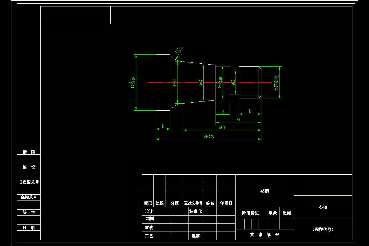 本次设计说明书以数控车床车削典型的芯轴零件为例,根据被加工工件的材料、轮廓形状、加工精度等选用合适的机床,制定加工方案,确定零件的加工顺序,各工序所用刀具,夹具和切削用量等,编写加工零件的程序。