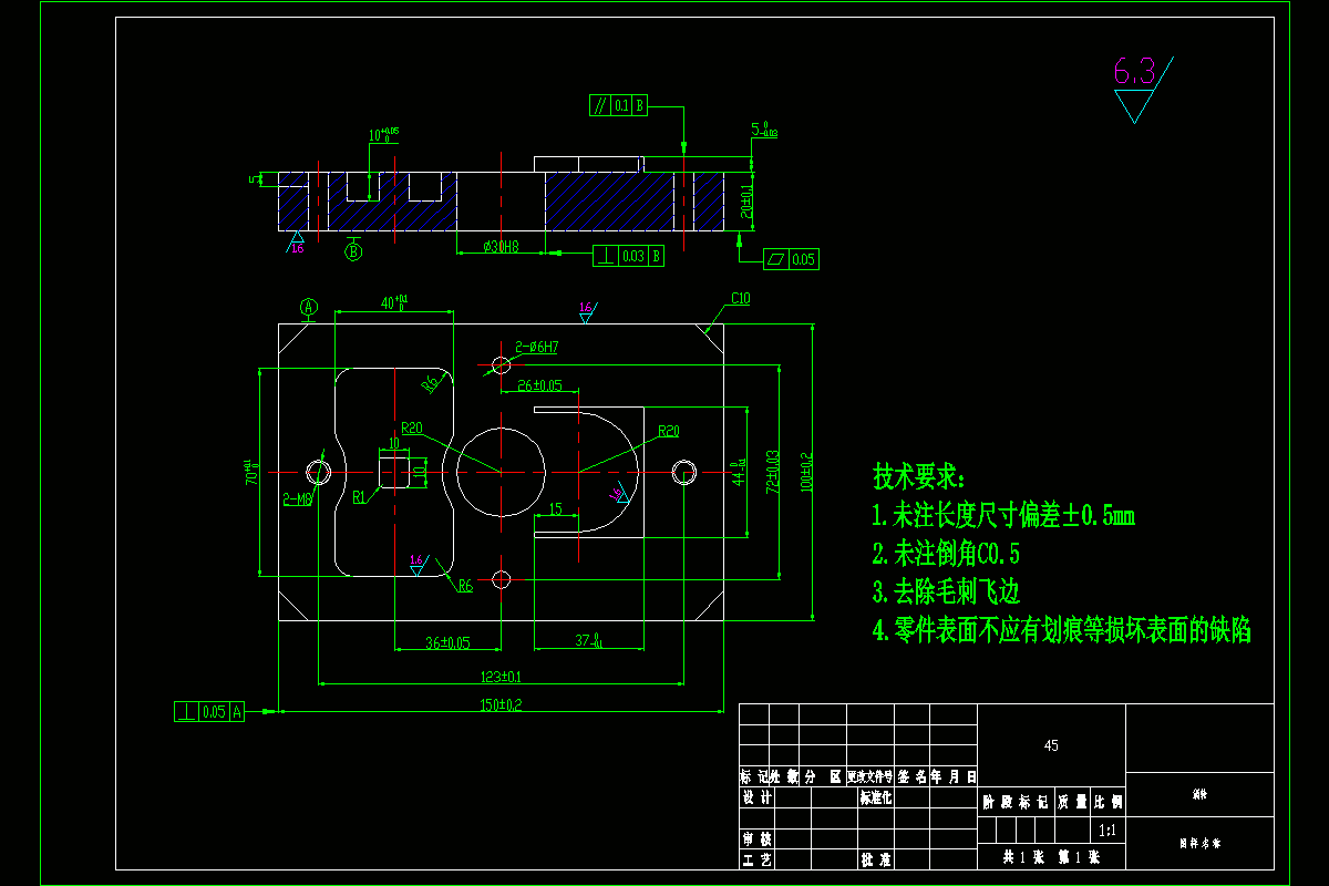 数控技术是技术性极强的工作,尤其在机械加工领域应用最为广泛,所以这要求从业人员具有很高的机械加工工艺知识,数控编程知识和数控操作技能。此次的设计任务是对零件的加工工艺设计与程序编制及加工,利用绘图软件AutoCAD将零件的二维图画出来,然后用UG软件画出三维图形,再接着设计加工方案。方案的关键在于以生成最佳的刀具路径、利用最短的时间内加工出零件,且加工工序最优,加工出来的零件的工艺符合设计图纸的要求。根据这些要求选择最佳的加工工艺方案,填写工艺卡片,工序卡片。用软件编写加工程序,并且进行仿真验证得到加工效果图。