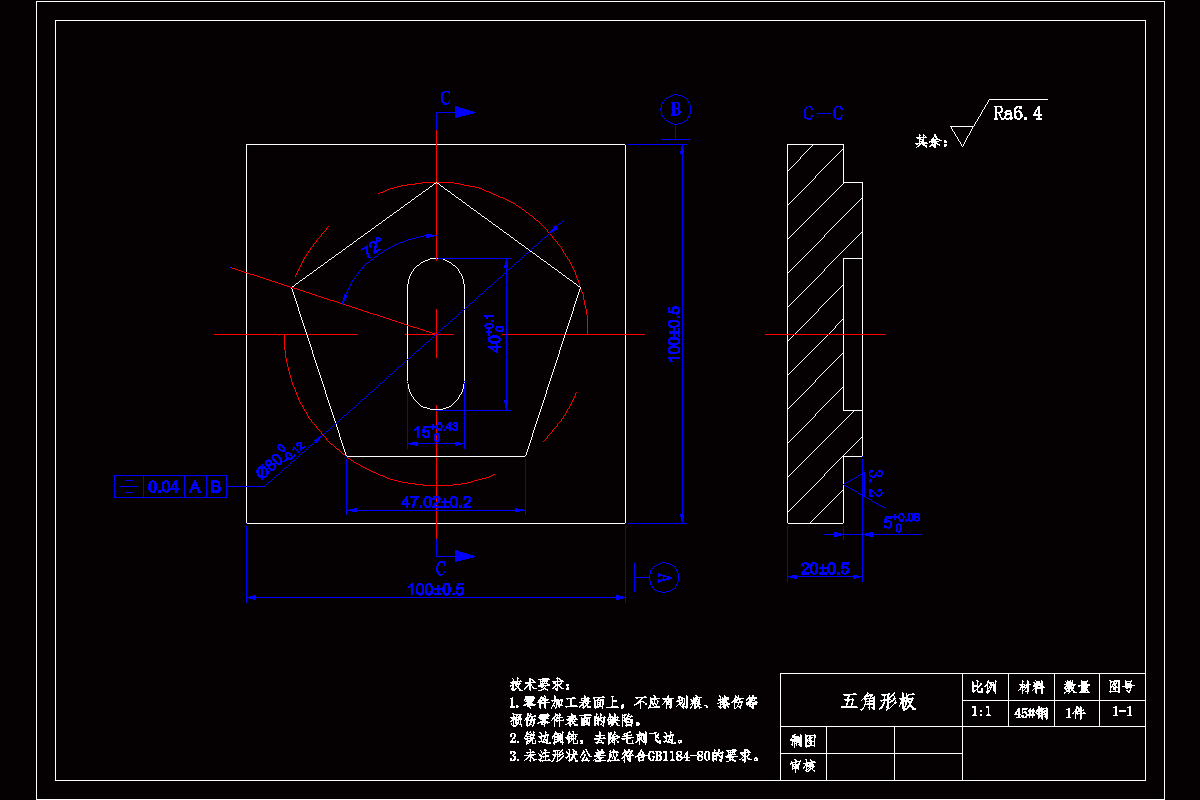 本文开始介绍了数控技术的制造业的社会、行业背景,数控技术人才需求情况,就业方向。接下来主要针五角形板零件数控加工工艺设计,首先根据五角形板零件的图纸及技术要求进行了详细的数控加工工艺分析,分析过后对该零件进行了数控加工工艺设计,拟定了加工方案,选择了加工设备、加工刀具、夹具,确定了装夹方案、切削用量,制定了加工顺序、编制了零件的数控加工工序卡片和刀具卡片等。最后,详细说明了如何运用CAXA自动编程编制该零件的数控程序,在最后使用仿真功能仿真加工零件,确定正确无误后使用后处理功能导出数控加工程序,完成本次设计。