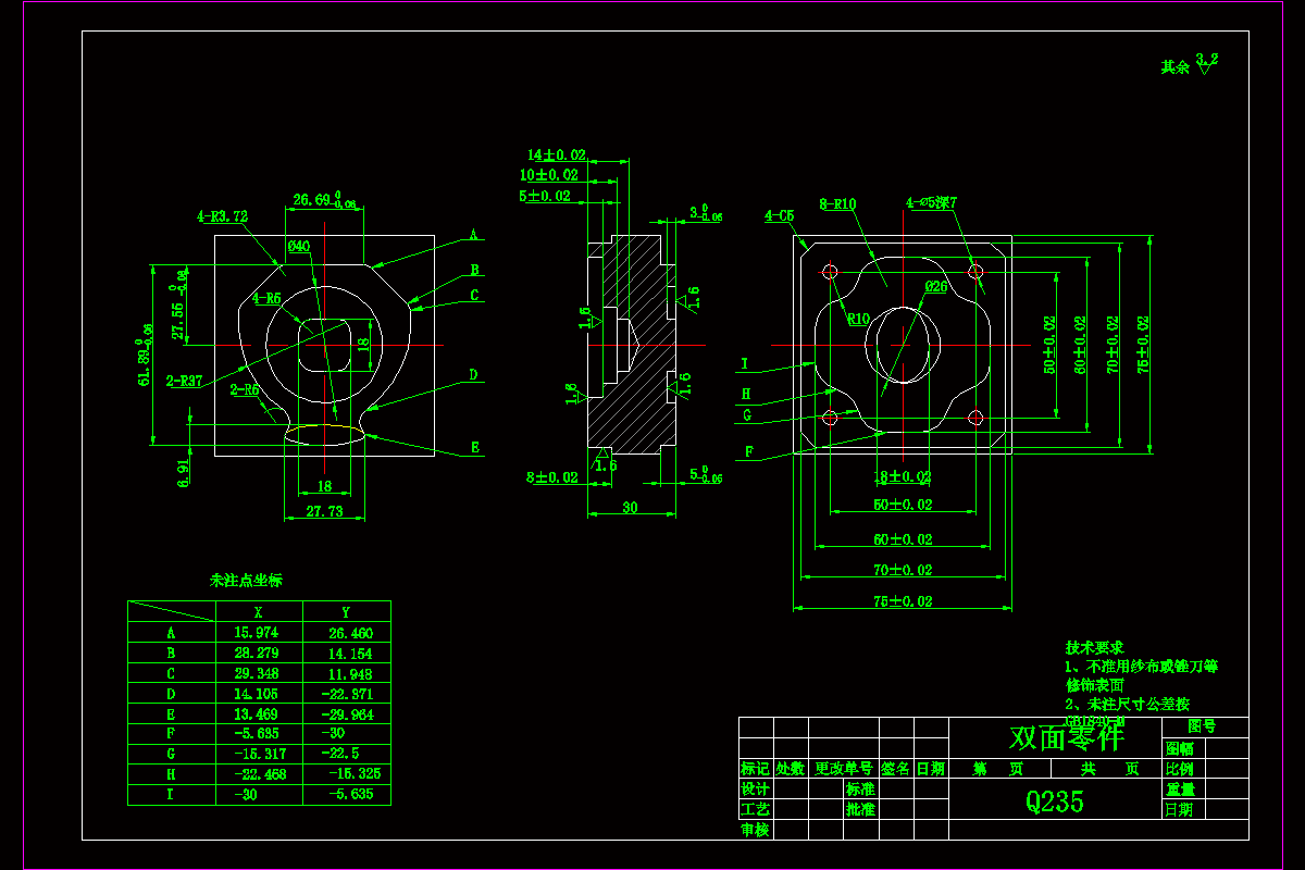 本文根据数控机床的特点,针对具体的零件,进行了工艺方案的分析,工装方案的确定,刀具和切削用量的选择,确定加工顺序和加工路线,数控加工程序编制。通过整个工艺的过程的制定,充分体现了数控设备在保证加工精度,加工效率,简化工序等方面的优势。