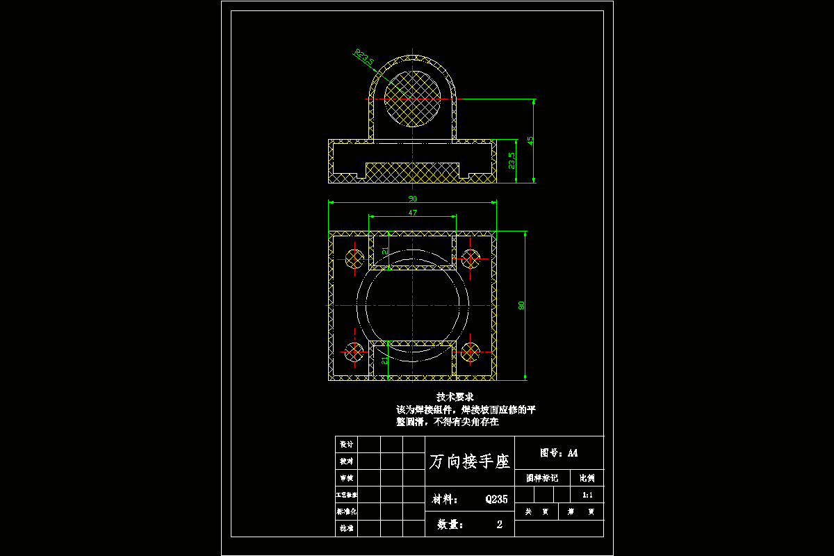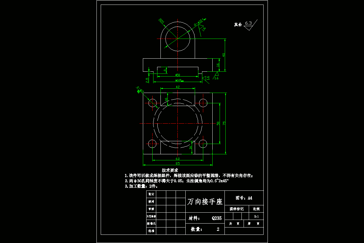 关键词:万向接手座;加工工艺;4-Φ10通孔;钻床;专用夹具