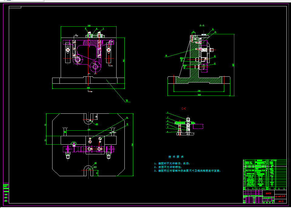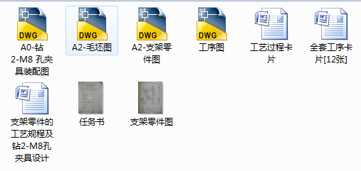 支架加工工艺规程及钻孔的夹具设计是包括零件加工的工艺设计、工序设计以及专用夹具的设计三部分。在工艺设计中要首先对零件进行分析,了解零件的工艺再设计出毛坯的结构,并选择好零件的加工基准,设计出零件的工艺路线;接着对零件各个工步的工序进行尺寸计算,关键是决定出各个工序的工艺装备及切削用量;然后进行专用夹具的设计,选择设计出夹具的各个组成部件,如定位元件、夹紧元件、引导元件、夹具体与机床的连接部件以及其它部件;计算出夹具定位时产生的定位误差,分析夹具结构的合理性与不足之处,并在以后设计中注意改进。