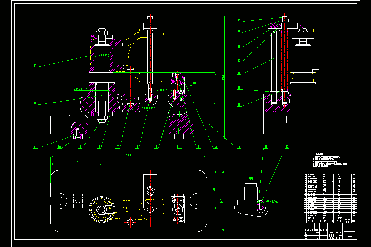 本次加工的零件设计的内容为:确定零件的定位方案(满足6点定位原理);选择夹紧装置还有夹紧元件;对夹具体进行了设计和确定;为保证零件的加工精度,设计了对刀装置(对刀块);对零件在装夹过程中的夹紧力和切削力进行计算等等。最后,完成专用夹具的夹具装配图还有所有非标准的零件图。