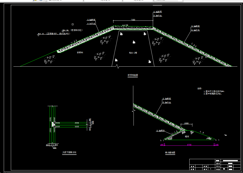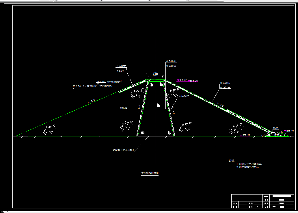 本次设计为大洪山水利枢纽设计(心墙土石坝方案)。枢纽的主体工程由挡水建筑物,泄水建筑物组成。挡水建筑物采用心墙土石坝,泄水建筑物采用溢洪道。土石坝位于主河床上,溢洪道位于右岸,采用挑流消能。