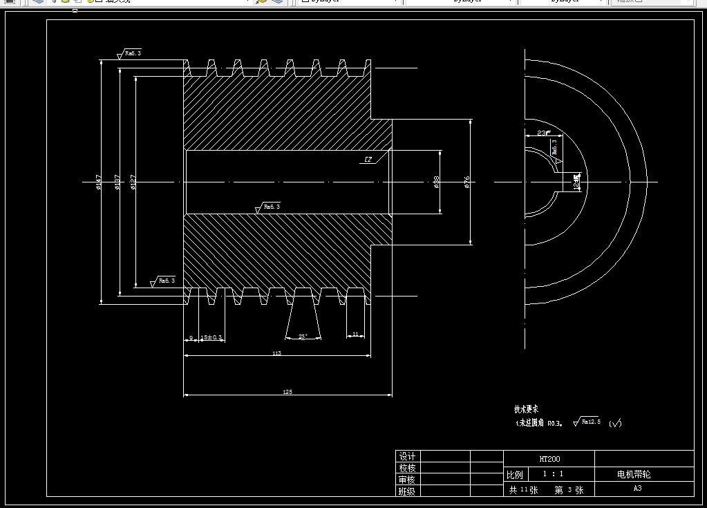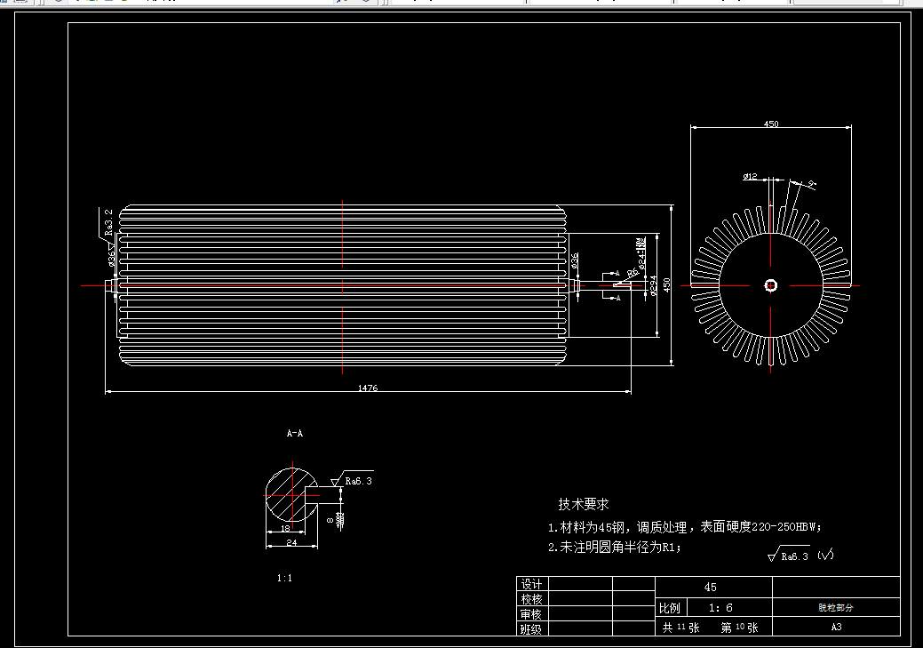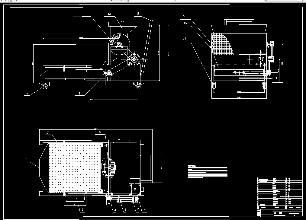 油葵脱粒装置在电机的驱动下,通过带传动带动脱粒部件工作,实现油葵脱粒分离,脱粒后的葵花籽落至筛板进行筛选,去除多余杂质,从而获得较干净的葵花籽。本文在查阅文献的基础上,确定油葵脱粒装置的工作原理和整机结构,进行了传动系统、脱粒装置和筛选装置等关键部件的计算校核和结构设计,并利用CAD完成了二维图纸的绘制。