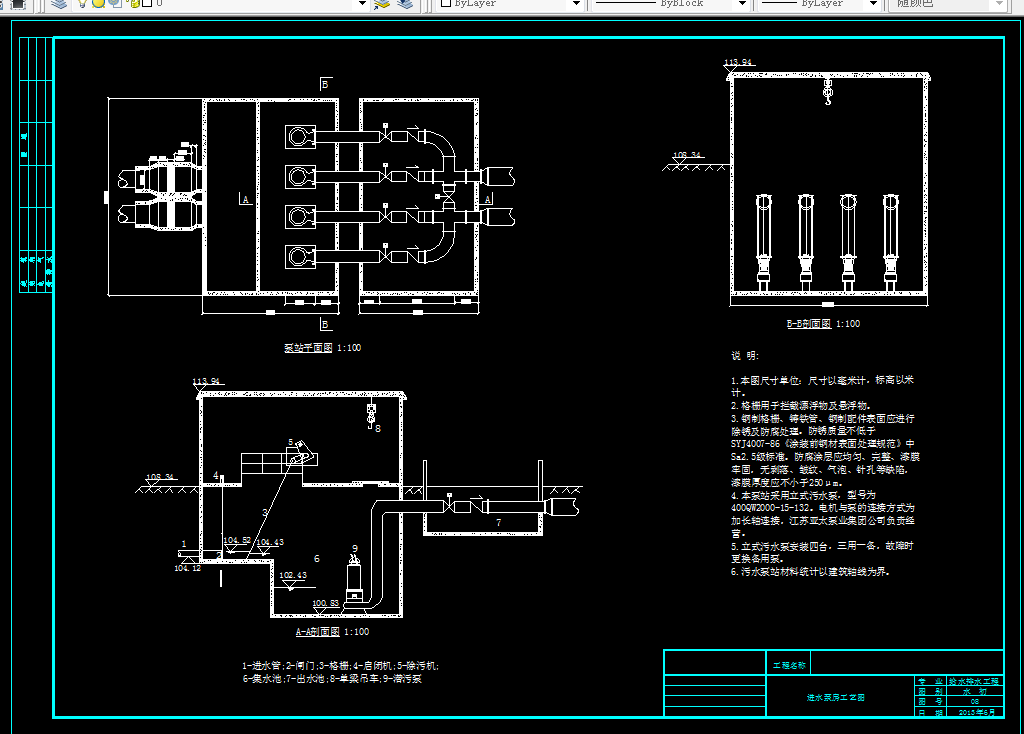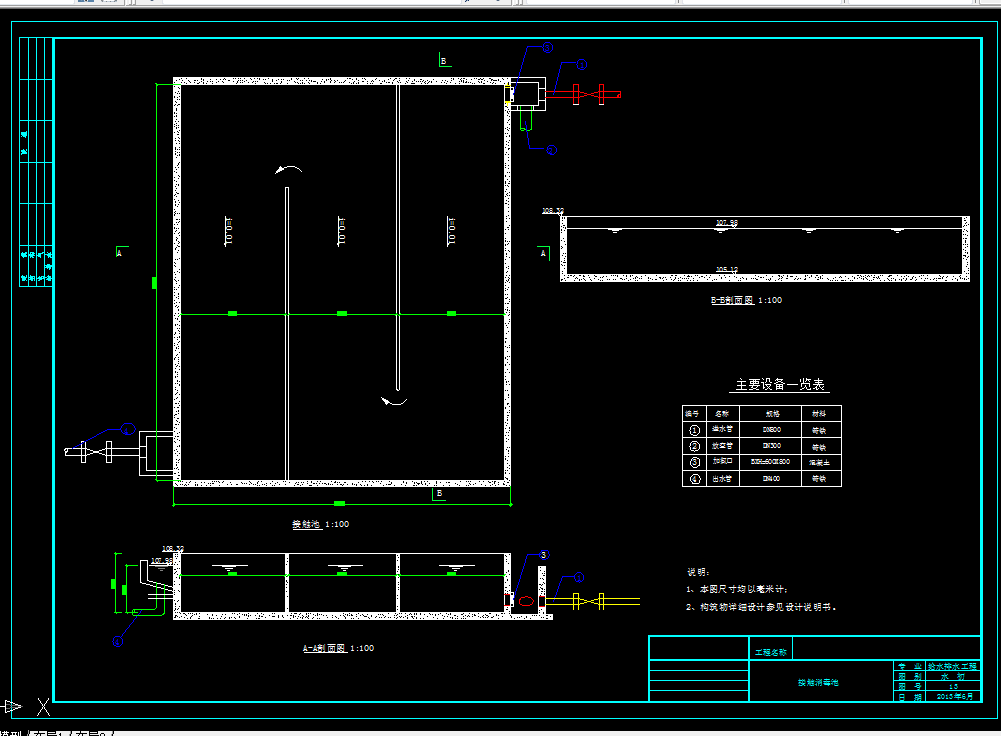 本设计是在市拟建一座工程规模为13.35万m3/d的污水处理厂。通过综合考虑概况及本工程的规模、进水特性、处理要求、运行费用和维护管理等情况,经技术经济比较分析,确定采用A2/O生物脱氮除磷处理工艺。它可以同时完成有机物的去除,硝化脱氮、除磷等功能,好氧池能将NH3-N完全硝化,缺氧池则完成脱氮功能,厌氧池和好氧池联合完成除磷功能。该工艺的污水处理流程为:污水从粗格栅到污水提升泵房,再从泵房到细格栅,然后到平流式沉砂池,再到初沉池,然后进入生物池(即A2/O反应池),再从生物池进入二沉池,污水经再经过接触消毒池后排入水体;污泥处理流程为:初沉池和二沉池产生的剩余污泥运入贮泥池,二沉池的回流污泥则通过管道、再次进入A2/O反应池,经过浓缩、贮泥、消化、加药处理后的污泥,进入污泥脱水车间,最后外运处理。通过此工艺的处理,出水水质可达到《城镇污水处理厂污染物排放标准》(GB18918-2002)中的一级B标准。此外该工艺还具有高效、节能的特点,且耐冲击负荷较高,出水水质好。因此,具有广泛的适应性,完全适合本设计的实际要求。