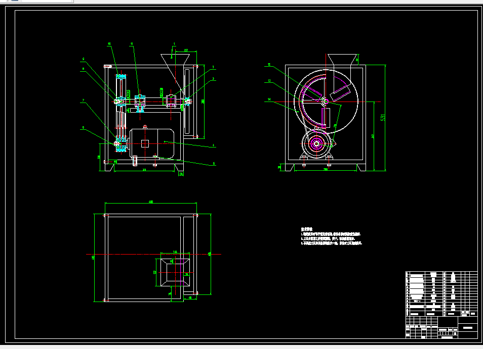 蔬菜是人体所必需的一种食品,而且食用方法多样。所以要把蔬菜加工成各种形状,如条状、片状等;单靠人工来完成既费时、费力而且也不好加工。目前,多功能切菜机多为价格昂贵的大型设备,不适用于农民个体生产及小型工厂的食品加工;为克服这种缺点,本设计在查阅了大量相关文献资料的基础上,进行切菜机的设计,经过理论计算及校核,设计了一种小型多功能切菜机。该机主要由进料斗、下料斗、切削刀、刀盘及电动机组成,其工作原理是利用根茎类蔬菜的自由落体实现进料,通过切削刀旋转将下料斗中的蔬菜进行切片或切丝,最后成品由出料口出料。实现了能够连续进料和出料,片厚度、丝粗细可调的功能,具有生产率高、功耗低、安全可靠、加工质量好等优点。