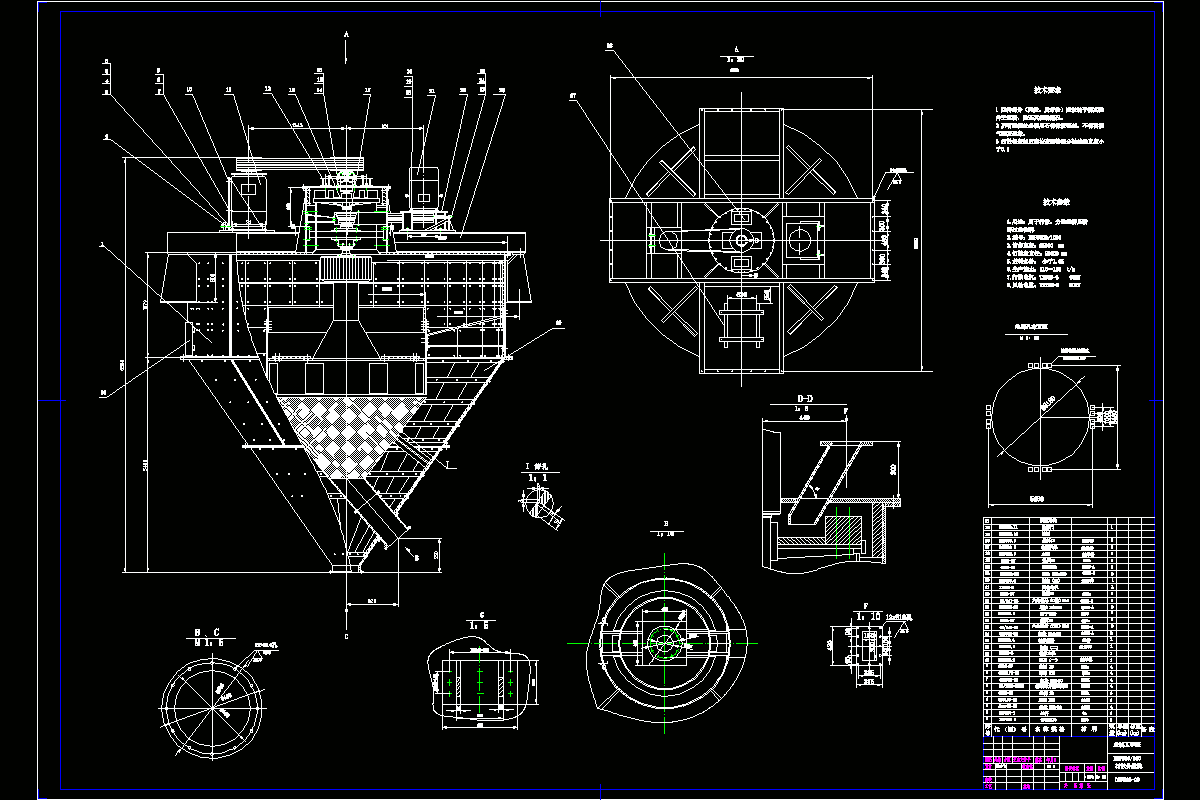 摘要:本课题是进行打散分级机的内外筒体及对原设计的改进,在筒体设计中我们先确定筒体的尺寸参数,然后对关键地方进行受力分析,在改进部分,我们对原设计进行了仔细的分析,指出了原设计的不足之处,然后对其进行合理的改进。打散分级机是九十年代初问世的新型料饼打散分选设备,集料饼打散与颗粒分级于一体,与挤压机配套使用,可以消除挤压粉碎机边缘漏斗和开停机过程中及正常工作时未被充分挤压的大颗粒对后续球磨系统产生不利的影响,以获得大幅度增产节能的效果。因为辊压机操作规程规定:设备启动时液压系统应处于卸压状态。所以,在辊压机启动过程中将有大量未经有效挤压的物料通过辊压机。这也是在打散分级机介入挤压粉磨工艺系统前的挤压预粉磨系统产量提高幅度不大且存在较大波动的重要原因。打散分级机利用离心冲击破碎原理对物料进行打散,利用惯性及空气动力学原理对散状物了实现分级。在挤压联合粉磨工艺系统中应用,可取得增产100%-200%,节约用电30%以上,研磨体消耗降低60%以上的效果。