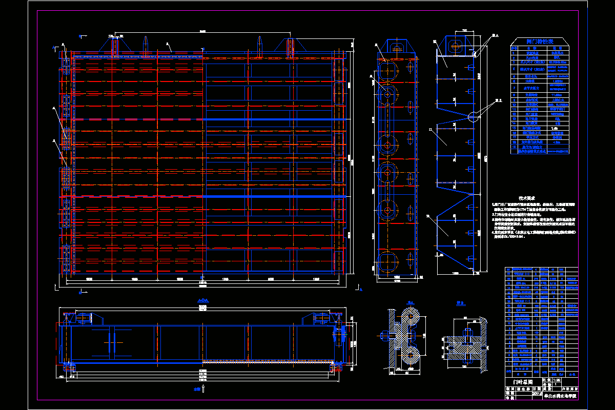 关键字:平板定轮闸门、门叶、顶节。
