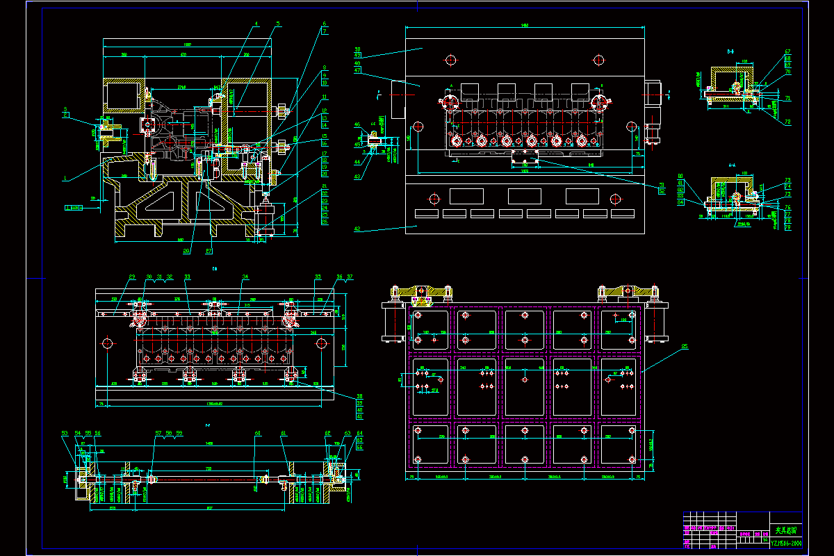 本课题设计的是气缸体双工位专用钻床,用于钻削被加工零件左侧面上的12个30深110mm的挺柱孔,右侧扩12个41的孔、锪挺柱孔41端面,并钻削12个8和7个6的水孔。本机床设计主要包括总体设计和夹具设计两个部分。采用卧式双工位双面加工方案,左侧主轴箱用来加工这12个挺柱孔,右侧主轴箱用来完成剩下的31个孔的加工,两主轴箱的中间是夹具部分。机床采用液压滑台实现刀具的进给,以保证进给速度的稳定可靠。由于工件左侧12个30 mm的挺柱孔之间孔距较小,使得左主轴箱中主轴的排布受到了限制,为此采用双工位分两批加工。工件选用“一面两孔”的定位方案,采用液压夹紧方式。为保证工件上被加工孔的位置精度,采用了导向装置。因工件批量较大,导向装置中的钻套容易磨损,所以采用了可换钻套。夹具体材料采用HT200,并在夹具体上开设排屑槽以防止切屑在定位元件工作表面上或其他装置中堆积而影响工件的正确定位和夹具的正常工作。