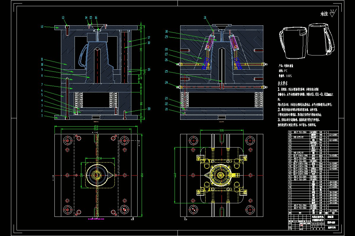 关键词:机械设计;模具设计;CAD绘制二维图;UG绘制3D图。