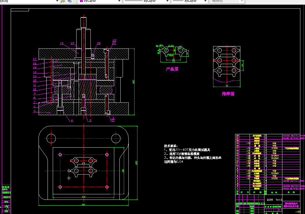 本文阐述了冲压复合模的结构设计及工作过程,通过工艺分析,采用落料冲孔工序,通过冲裁力、顶件力、卸料力等计算,确定模具类型。该模具采用中间导柱模架,左右两边的导柱和导套采用不同的型号,以避免装配时错误。落料凹模采用镶拼结构,废料从凸凹模的开槽中卸出。本模具性能可靠,运行平稳,提高了产品质量和生产效率,降低劳动强度和生产成本。