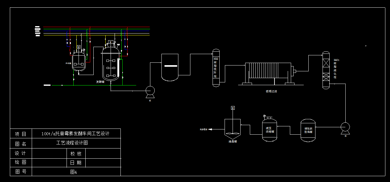 摘要:本工艺设计综述了托普霉素的发酵工艺路线,在此基础上,对100T/a托普霉素发酵车间工艺进行了初步设计。该工业化生产路线使用基因工程黑暗链霉菌作为产生菌,省略分离纯化中的水解步骤,收率较高、成本较低、发酵过程简单并易于工业化生产。本设计对工艺路线中出现的问题,包括车间的“三废”处理及综合利用、车间布置等都进行了较为合理地设计,并同时进行了主要的工艺计算和工艺设备选型,绘制了工艺流程图、车间设计图等一系列图表。