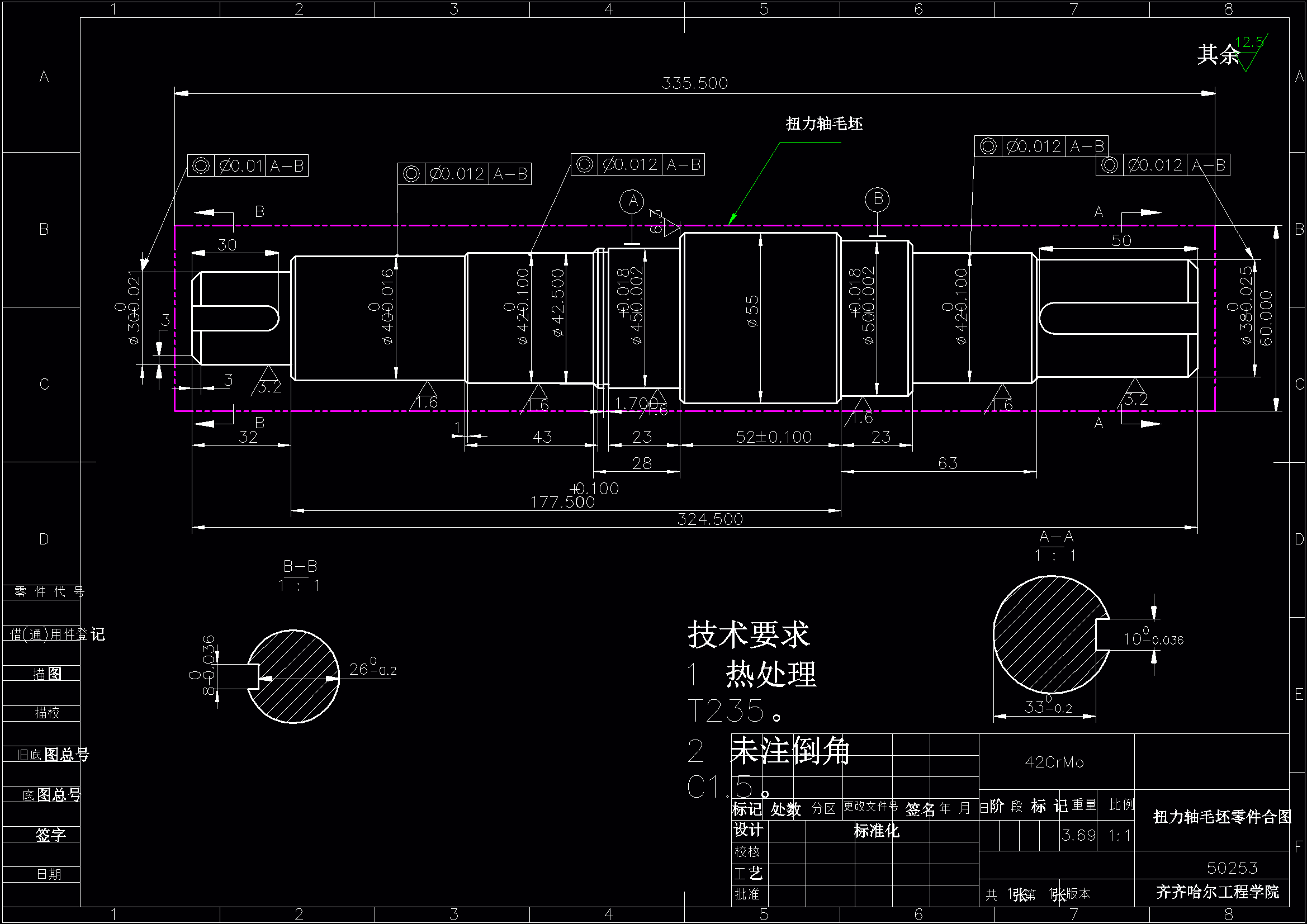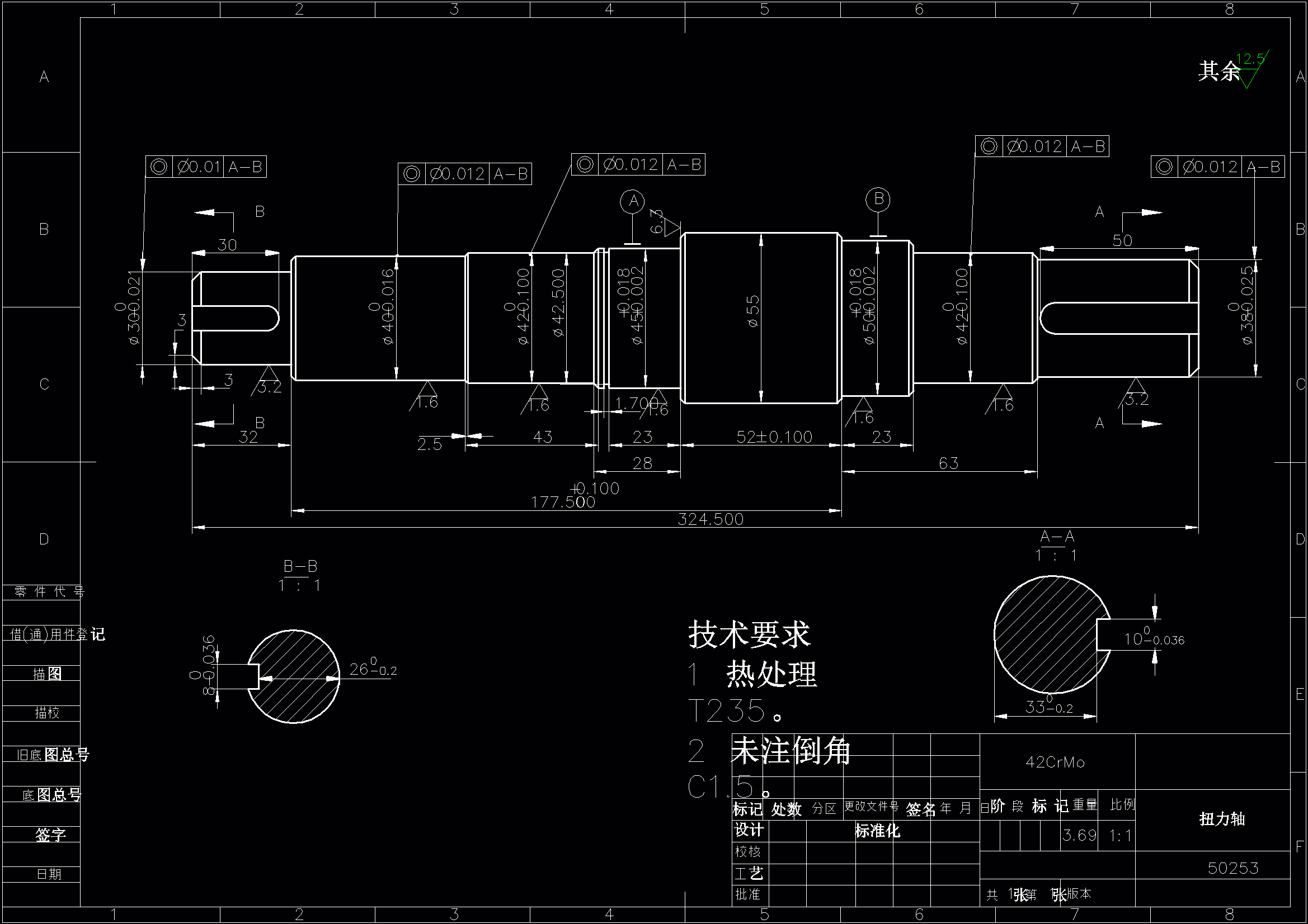 扭力轴作为轧钢机活塞内的一部分,在活塞运动的过程中具有极其重要的角色,其工作特点是运动速度高、工作环境温度高、运动频繁,并且生产加工的技术要求条件高。 本次的主要设计内容为扭力轴加工工艺规程设计及夹具设计,主要包括扭力轴零件的工艺分析、扭力轴的加工工艺规程设计、扭力轴的加工工序设计以及加工扭力轴专用夹具的设计四部分内容,在设计过程中主要用到机械设计、机械制造工艺及机床夹具设计、金属切削机床、公差配合与测量技术、材料力学、画法几何等方面专业知识,除此之外,还需要掌握更多的零件加工工艺性知识,以及夹具如何实现装夹夹紧和定位。 通过这次设计,不仅很好的检验了大学所学的东西,而且还能够提高我们的动手和计算能力,增长我们的加工工艺经验,同时通过这一次实践机会,有利地让我们接触了理论和实际的差别,让我们在今后的工作中少走弯路,让我们积攒了宝贵的社会经验。