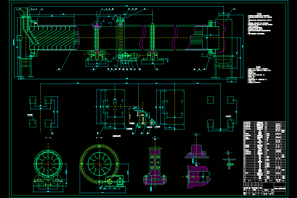 筒体,滚圈,托轮,挡轮,密封装置,传动装置以及其他零件是所有硫酸铵干燥器的重要组成成分。首先选择干燥设备,选择干燥方案。然后进行参数设计以及水分蒸发和空气消耗的计算。再确定干燥器和滚圈的结构设计,然后计算是否合理。然后再确定传动装置以及计算。得出电机功率的求法。最后在进行回转圆筒的密封,润滑以及安装调试。
