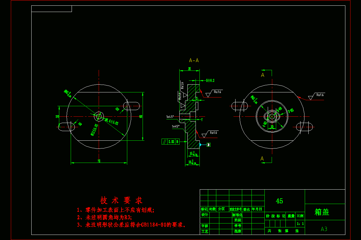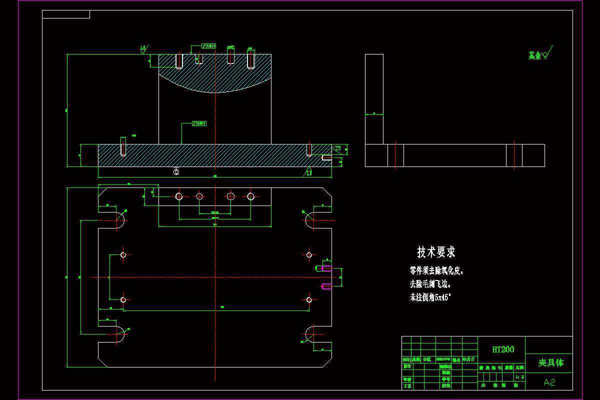 本文主要是箱盖零件的机械加工工艺及工装设计,在工艺设计中要首先对零件进行分析,了解零件的工艺再设计出毛坯的结构,并选择好零件的加工基准,设计出零件的工艺路线;接着对零件各个工步的工序进行尺寸计算,关键是决定出各个工序的工艺装备及切削用量;然后进行专用夹具的设计,选择设计出夹具的各个组成部件,如定位元件、夹紧元件、引导元件、夹具体与机床的连接部件以及其它部件;计算出夹具定位时产生的定位误差,分析夹具结构的合理性与不足之处,并在以后设计中注意改进。