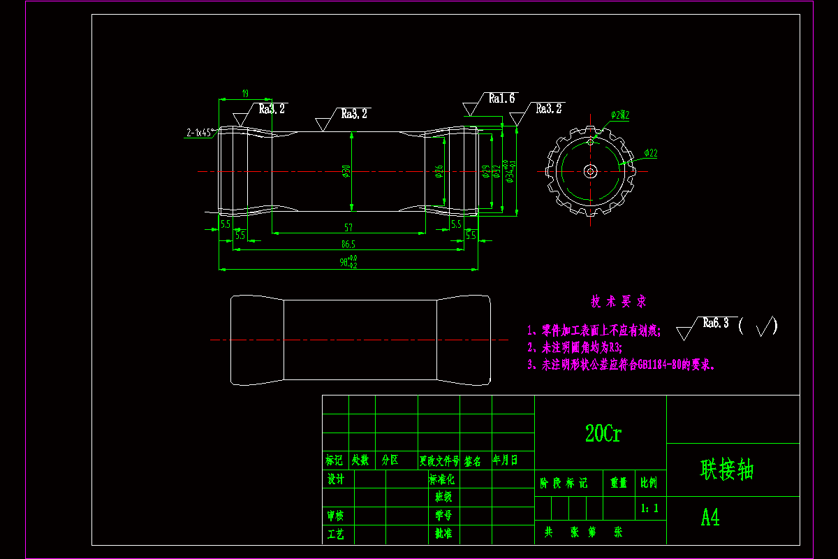 联接轴零件加工工艺及钻床夹具设计是包括零件加工的工艺设计、工序设计以及专用夹具的设计三部分。在工艺设计中要首先对零件进行分析,了解零件的工艺再设计出毛坯的结构,并选择好零件的加工基准,设计出零件的工艺路线;接着对零件各个工步的工序进行尺寸计算,关键是决定出各个工序的工艺装备及切削用量;然后进行专用夹具的设计,选择设计出夹具的各个组成部件,如定位元件、夹紧元件、引导元件、夹具体与机床的连接部件以及其它部件;计算出夹具定位时产生的定位误差,分析夹具结构的合理性与不足之处,并在以后设计中注意改进。
