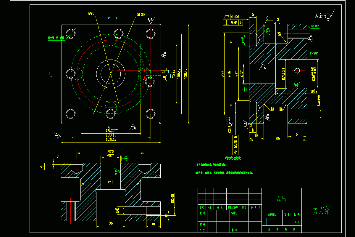 本课题主要是在方刀架零件加工过程的基础上进行的专用夹具设计。主要加工部位是平面和孔。在一般情况下,确保比保证精密加工孔很容易。因此,设计遵循的原则是先加工面后加工孔。孔加工平面分明显的阶段性保证粗加工和加工精度加工孔。通过底面作一个良好的基础过程的基矗主要的流程安排是支持在定位孔过程第一个,然后进行平面和孔定位技术支持上加工孔。在随后的步骤中,除了被定位在平面和孔的加工工艺及其他孔过程。整个过程是一个组合的选择工具。专用夹具夹具的选择,有自锁机构,因此,对于大批量,设计夹具会产生更高的生产力,提高生产效率,满足设计要求。