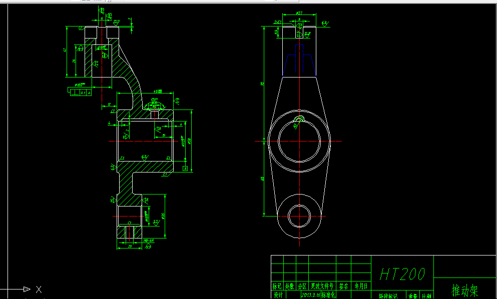 本课题要求根据企业生产需要和推动架零件的加工要求,首先完成零件的加工工艺规程设计,在此基础之上,选择其关键工序之一进行专用夹具,并完成必要的设计计算。本机床所用夹具的通用性强,工件采用定位夹紧,快速方便。夹紧采用手动加紧,采用这种方式完全能够满足精度要求。而且简易方便,制造成本低,通用性好。由于推动架的生产量比较大,为了保证产品质量,提高加工效率,需要对其加工工艺进行优化设计,并在关键工序使用组合机床或专用机床进行加工。