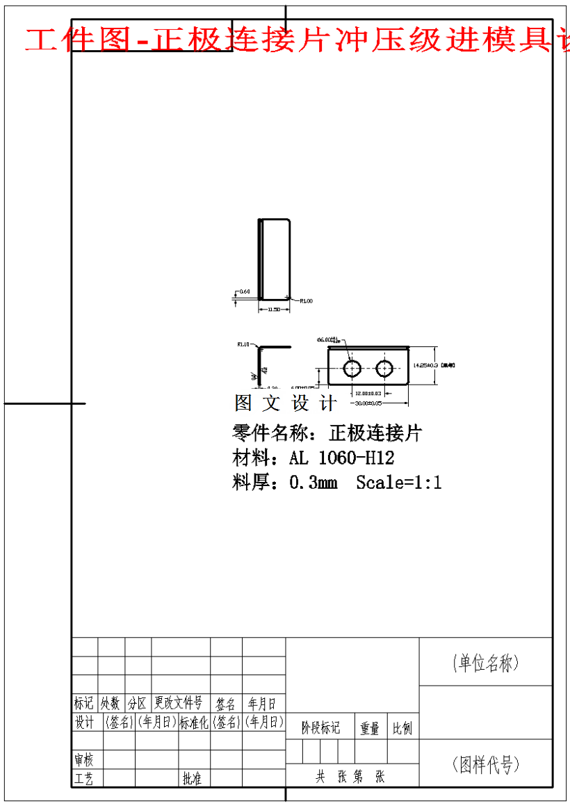本次设计选取的设计题目为正极连接片冲压成型工艺与模具的设计,中对该正极连接片的冲压成型工艺进行了深入的分析和探讨,在此基础上,详细的介绍了该正极连接片的从压成型的工艺、设计参数,在此基础上对该正极连接片的二维图纸以及零件图进行设计绘图。此外选取的冲压模具零件主要有冲床,模架垫板,剥线板,初始冲孔销,导销等。最终得到完整的冲压模具工作流程。