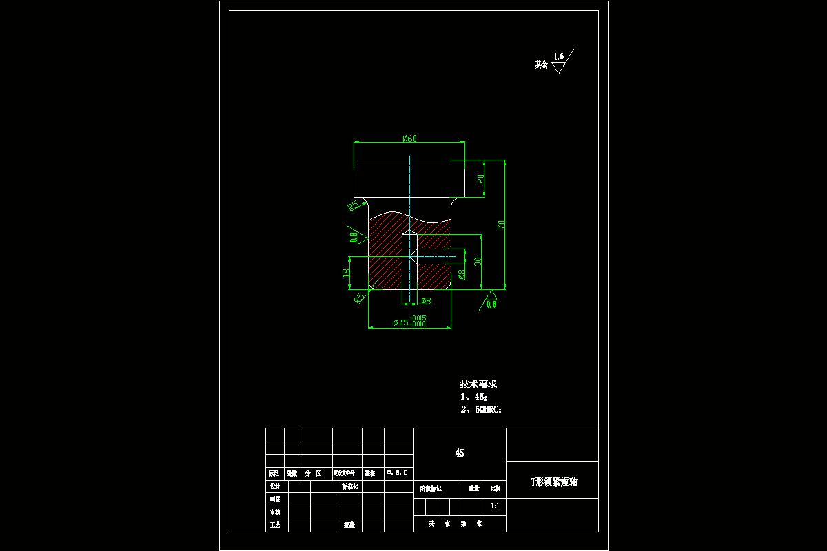 关键词:T形锁紧短轴、加工工艺、8mmФ8十字孔、夹具、立式钻床
