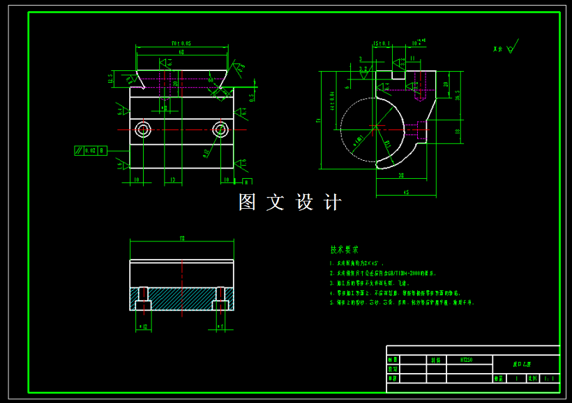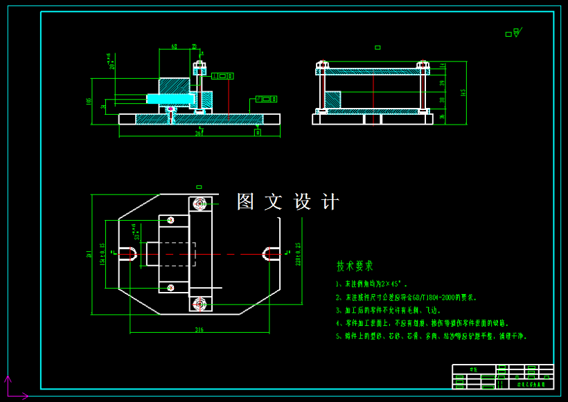 设计的重点是夹具的设计,由于工件上的孔系都要以底面作为基准加工,故首先得加工出底面,为保证孔的位置和加工准确性我们一定要在加工底面的时间通过画线找出底面的加工余量。这样就可以更好的保证孔系的位置和加工精度。因此工序一中的专用夹具的制造显得尤为重,本次夹具设计中对工序一中铣削夹具进行了设计,提供了一套可使用于中批量生产的,经济性和实用性均良好的夹具设计方案。