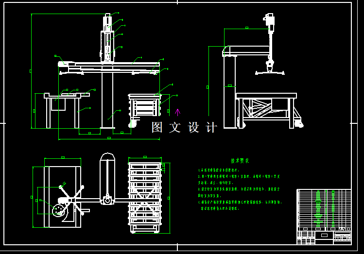 随着现代制造技术的发展,冲压生产技术也向高速化、自动化、柔性化方向发展。冲压生产过程中的手动操作、人工上下料等传统生产方式已无法满足高速发展的工业要求。在冲压生产中采用自动化生产单元或组成柔性自动化生产线,是进行高速、高效、高质量冲压生产的一种有效方法,也是现代冲压生产技术的重要发展方向之一。 本设计采用分体式设计,根据作业类型将送料台与机械手分离,机械手主要负责胚料的抓取与放置,机械手包含两个丝杆模组,两个电机和四个气动吸盘;上料机构为剪叉式结构,负责抬升胚料,便于机械手的协同作业;喷涂机构完成胚料的喷涂作业;对中机构负责胚料的对中。