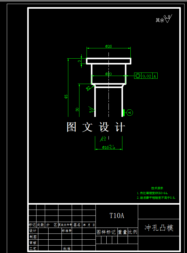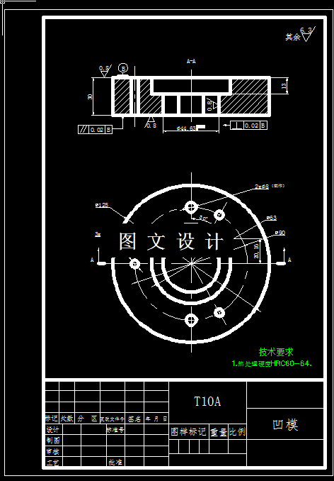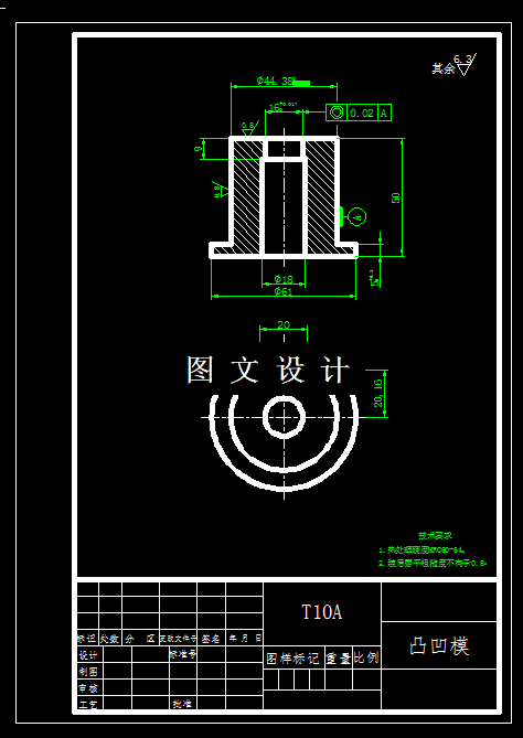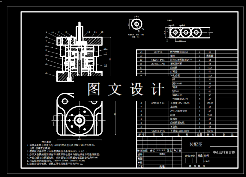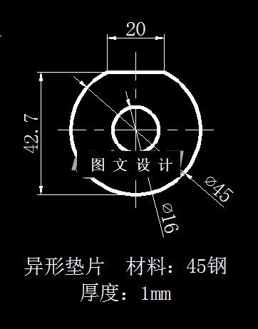 该零件是一个异形垫片。材料为45钢,厚度为1mm。此工件冲孔、落料两个工序。 材料为45钢,具有良好的冲压性能,适合冲裁。工件结构相对简单,有一个φ16mm和1个φ45mm的孔;孔与孔、孔与边缘之间的距离也满足要求。工件的尺寸全部为自由公差,可看作IT14级,尺寸精度较低,普通冲裁完全能满足要求。采用落料冲孔一次成形,采用复合模。