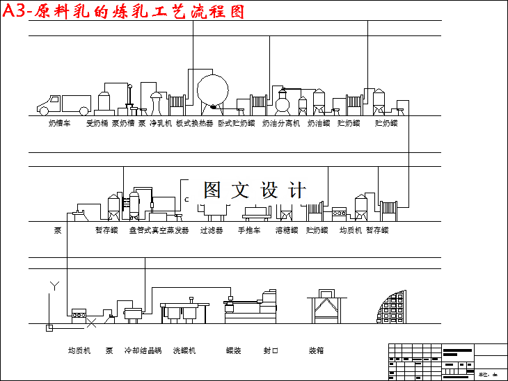 本设计是班处理20吨原料乳的炼乳车间的设计。设计主要从市场需求方面考虑,选择产品的形式,确定产品的生产流程,并对其进行生产论证,在此基础上进行物料衡算、热量衡算,再对主要的设备进行选型。在完成设计说明的基础上,绘制产品生产工艺流程图及车间平面布置图。