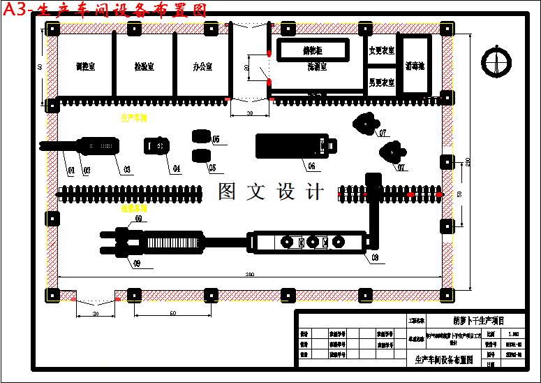 年产量600吨干制胡萝卜,员工48~60人,技术人员10人左右。该厂是一座主要是干制胡萝卜的生产,年加工产量为600吨,主要产品为胡萝卜干。厂址是南北向的长方形厂区,东西向宽65m,南北向长80m,占地面积是7.8亩。地势平坦,全年主风向为西南风。主要生产车间布置在全厂南北纵向上的中心地带,形成生产区;由它带起的原料库及车间、仓库,和动力设施及供水设施(锅炉房、空压站、变电所、水处理间)分别布置在后侧,左前方和右侧;行管部门和检测中心在厂前区,生产车间在其后面,十分方便;生活区在厂区右侧前部,与厂区用墙隔开,便于生产与生活的管理,符合生产卫生设计要求。厂内交通通畅,主要道呈南北向,运输原料、燃料等十分方便。从长远的发展角度出发,在厂区右上角设计了发展预留地。