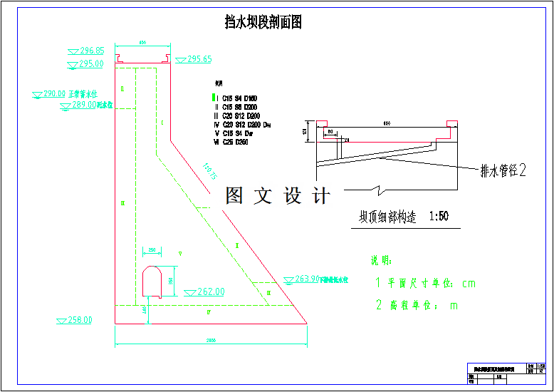 重力坝的工作原理及特点。 重力坝的分类,国内外重力坝建筑情况及成就。重力坝的荷载及其计算方法,荷载的组合。重力坝的稳定分析。稳定的概念及形象因素,稳定分析方法,指标的选用及评价,提高稳定性的工程措施。重力坝应力分析的目的和内容。应力分析方法的综述,材料力学法及应力控制标准,影响坝体应力分析的因素(包括:地基变形、剖面轮廓突变、施工方案及分期施工等),有限元法及实验方法在重力坝应力分析中的应用。拟定重力坝剖面的基本原理。重力坝的基本剖面及实用剖面。剖面优化的概念,重力坝的可靠度设计,可靠度设计原则,极限状态设计方法。宽缝重力坝的特点:设宽缝后,坝基渗水可从宽缝中排出,坝底渗透压力大为降低并使扬压力作用面积减小,坝体体积较实体重力坝减少10%——20%甚至更多,同时增加了散热面,又为观测检查,加固维修提供了厂地。泄水重力坝的剖面设计,泄水重力坝的工作特点及泄水方式(坝顶溢流式、深式泄水孔);溢流重力坝的剖面设计;泄水孔的布置;设计流量的确定;单宽流量的选择;堰顶高程,溢流前缘长度,孔口尺寸及其位置的确定;深式泄水孔的形式及构造。溢流重力坝的下游消能。水流对河床的作用,泄水重力坝下游水流衔接方式及其特点。(1)底流式消能:促成淹没水越的措施,闸门的开启程序,护坦及其它辅助效能物的设计。(2)挑流式消能:挑射距离,冲刷深度,连续式及差动式消能的作用和尺寸的拟定。重力坝的温度应力及裂缝防止。重力坝的细部构造。坝缝(横缝、纵缝、水平施工缝)、止水、坝体排水、廊道的布置及构造、坝顶等。重力坝的地基处理,重力坝对地基的要求,坝基的开挖,灌浆(固结灌浆,帷幕灌浆)及排水设计,坝基软弱破碎带的处理。实体重力坝及支墩坝。其他形式的重力坝如浆砌石重力坝的构造特点及材料要求;空腹坝的结构特点;大头坝、连拱坝、平板坝结构形。