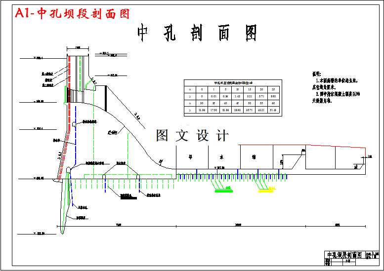 本设计为某水利枢纽设计.某水利枢纽工程位于黄河托克托至龙口峡谷,其控制流域面积395000平方公里,正常蓄水位977m,校核蓄水位980.4m,该坝为实体混凝土重力坝,最大坝高为928.16m,设计完成后的某重力坝具有供水,发电,防洪的作用.设计内容包括枢纽布置,枢纽泄水能力验算,坝体剖面设计,导墙设计,消能设计,坝体应力与抗滑稳定验算,细部构造,与地基处理.其中溢流表孔采用WES曲线设计,底流消能;底孔采用无压形式,底流消能.设计过程中我们大量翻阅了大量的文献、资料,并对实际工程做了改进。设计过程包括初稿,修改,复稿,再修改,成稿的过程。