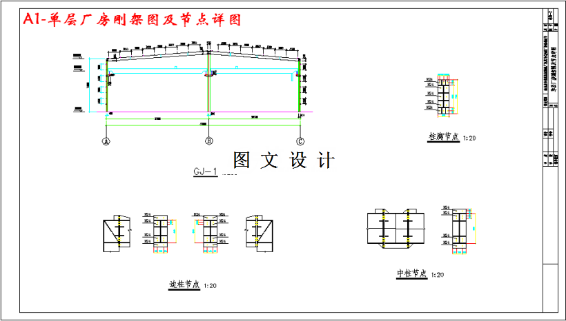 本设计题目为门式轻型钢架单层厂房结构设计,其目的为实现专业知识的综合应用。主要依据材料力学、结构力学等专业知识,设计任务书,以及《建筑结构荷载规范》GB50009-2001和《建筑抗震设计规范》GB50011-2001,《钢结构手册》,《钢结构节点手册》等设计规范。通过本设计,使学生掌握门式轻型钢架单层厂房结构设计的特点及优点,熟悉建筑结构设计的步骤及过程,掌握常用结构设计规范和常用设计图集的应用,熟悉多层钢框架结构中各构件的设计计算,掌握节点的设计和具体构造。研究主要内容:1.结构方案选择与结构布置;2.荷载统计和围护结构设计;3.结构体系在竖向荷载和水平荷载作用下的内力分析;4.结构侧移计算及截面验算;5.主体结构构件及节点设计;6.基础设计。