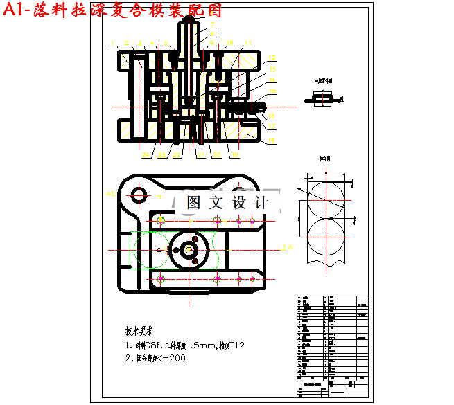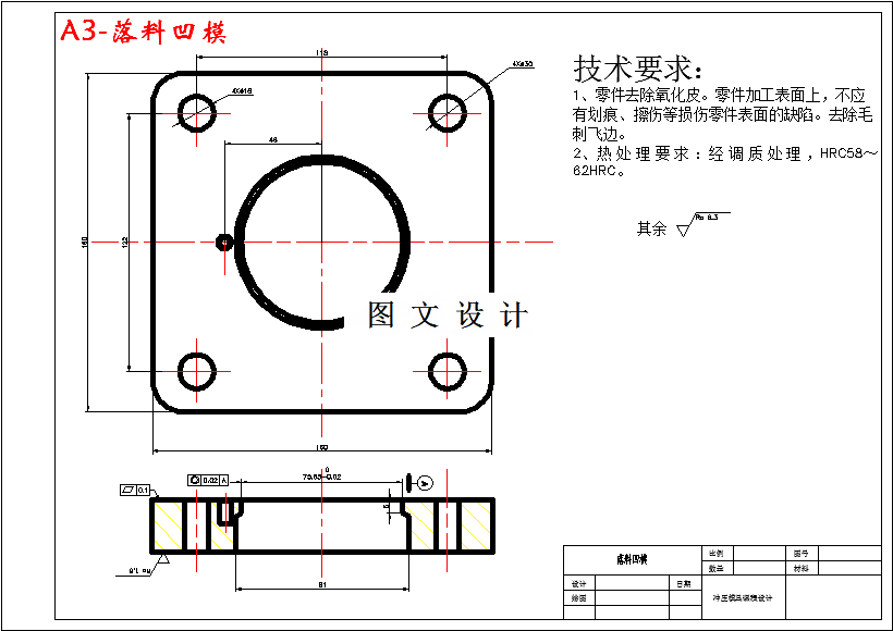工艺性对精度的要求是一般情况下,拉深件的尺寸精度应在IT13级以下,不宜高于IT11级;对于精度要求高的拉深件,应在拉深后增加整形工序,以提高其精度,由于材料各向异性的影响,拉深件的口部或法兰外缘一般是不整齐的,出现“突耳”现象,需要增加切边工序。采用了落料与拉深复合模,提高了生产率,对落料以及拉深的精度也有很大的提高。由于剩余三道冲压工序是在单工序模中完成,中间过程需要取件,二次定位,精度和生产效率较低。但单工序模结构简单,制造成本低,便于制造,制造周期短。