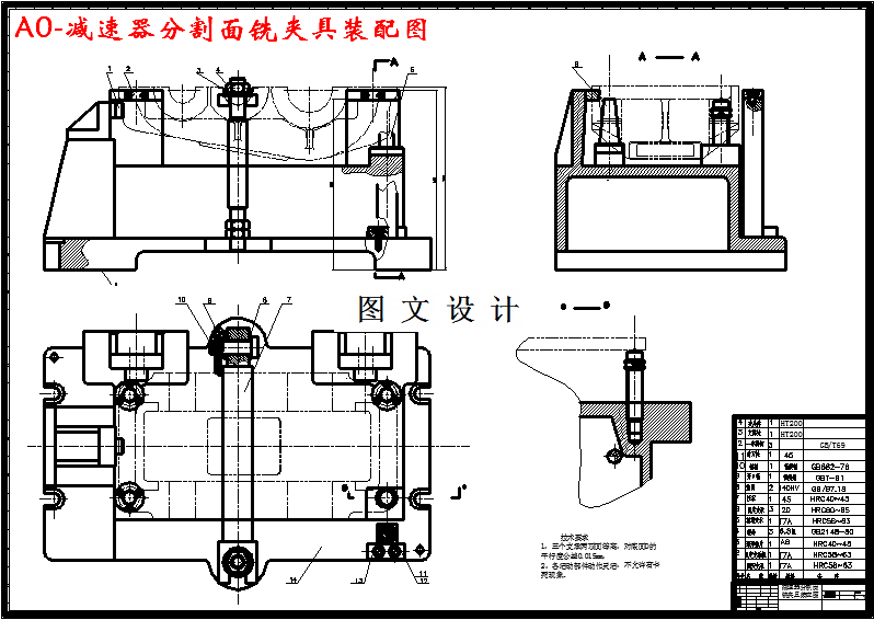 本次设计二级减速器上箱体机械加工工艺规程,合理选择了工艺过程中的机床刀具和量具,设计了铣分割面工序和钻螺栓孔工序的专用机床夹具。并计算了该夹具使用的精度保证,计算结果表明两套夹具均可,保证了零件的加工要求。本次设计的夹具为60道工序—粗铣分割面,该夹具适用于立式铣床。本次设计的夹具为第100道工序——以分割面外形定位,钻8×φ14孔,锪8×φ24孔。该夹具适用于Z3025摇臂钻床。