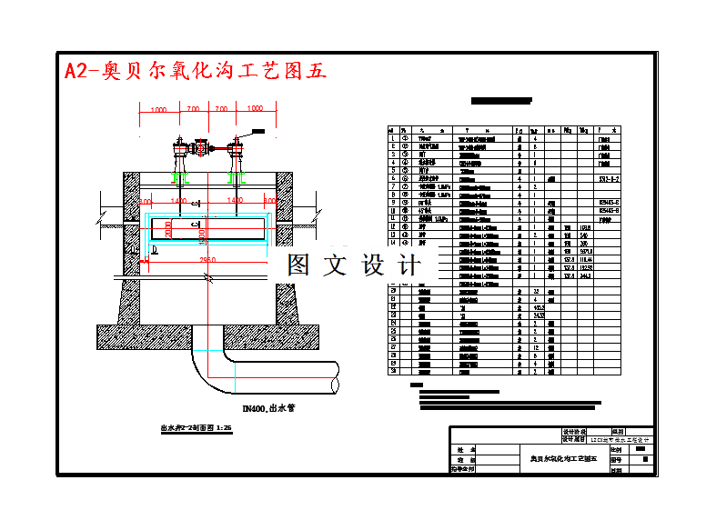 本工程设计是5万m3∕d 污水处理厂工程设计,设计内容包括污水管网、雨水管网设计和污水处理厂设计。建设规模近期处理水量为3.4万m/d,远期建设为5万M/d。污水进水水质为:BOD5=180.4mg/L、SS=265.5mg/L、CODCr=201.0mg/L、TN=47.1mg/L、NH3-N=33.5mg/L、TP=5.8mg/L。污水处理后的水质应 达到国家《城镇污水处理厂污染物排放标准 (GB18918-2002)一级标准的 A 类标准。根据当地地形及污水处理厂的选址,确污水管道布置采用截流式布置。结合污水厂的污水水质和排放标准,本工程设计选则具有脱氮除磷功能的氧化沟和改良A2O两种方案作为污水处理核心处理工艺进行比选,经技术经济比较确定奥贝尔氧化沟工艺为确定工艺。污泥处理采用机械浓缩、脱水工艺。污水处理厂总占地面积 5.4公顷,项目总投资估算为 1.6 亿元,水厂运行费用为1.64 元/m3 水。
