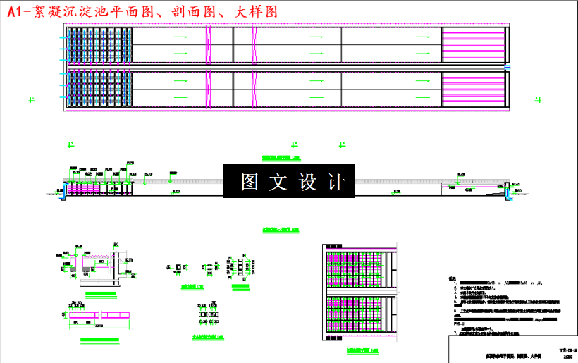 本设计题为自来水厂工程初步设计,主要是根据题中所涉及城市的相关资料,确定其给水工程流程,并对其净水构筑物进行计算。并把经过处理后的自来水,由城市给水管网输送到各用水小区。该城市拟建自来水厂的设计生产规模达每天10万吨。该工程以《生活饮用水卫生规范(2001)》作为产品质检标准,分别采用硫酸亚铁和二氧化氯作为混凝剂和消毒剂。该工程洁净水生产工艺的主要流程为:源头取水 管井输送加氯氧化消毒 竖流式折板絮凝池 平流沉淀池 V型滤池 臭氧接触滤池 活性炭滤池 清水池 二级泵房 城市管网;而其污水处理的主要流程为:排泥水 浓缩池 离心脱水机 泥饼。水厂设计面积为5.7公顷,约50%绿化面积,附属面积占总面积的15%。该工程设计注重环保、经济、实用、创新与节能,以“零排放”为设计总之,即保证在生产过程中产生的废水可全部实现回收利用。